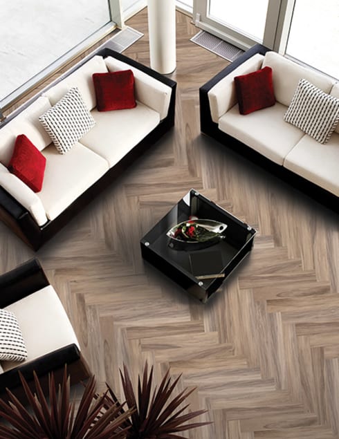 Porcelain, which is made from high-quality clays and fired in a kiln with high temperatures, is often used when a more natural look is preferred. Since it is the same color throughout, it’s less likely to show cracks and chips. It’s also very dense, so it’s a great choice for the home that experiences a high level of foot traffic. If you’re looking for water resistance, porcelain is definitely the way to go, as it more resistant to water than many other floorings are.